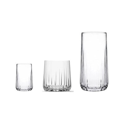 Katru glāzi rotā smalkas vertikālas rievas, kas piešķir tai elegantu un pārlaicīgu izskatu. Komplektā ir 360 ml, 315 ml un 135 ml glāzes.