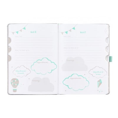 Dienasgrāmata ir sadalīta 4 daļās: dienasgrāmata, plānotājs, dzemdību plāns un pirmās dienas. Tā kalpos kā ceļvedis grūtniecības laikā, kurā jūs varēsiet reģistrēt savus svarīgākos notikumus un medicīniskās pārbaudes līdz pat dzemdībām.