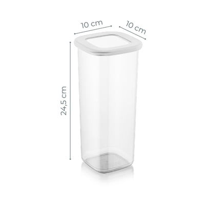 Praktisks izmērs, tajā ietilpst kilograms miltu, cukura un makaronu... Augstā kaste neaizņem daudz vietas, tā ir viegla un parocīga.