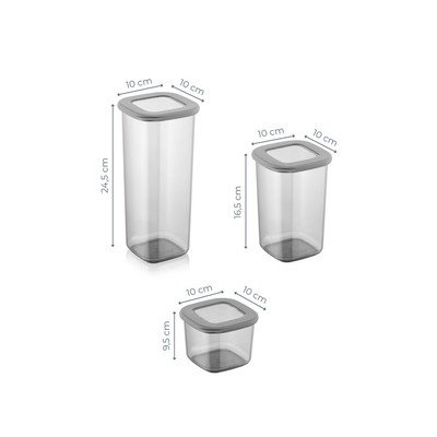 Patīkami konteineri sausās pārtikas uzglabāšanai. Lielajos var ievietot 1 kg miltu. Es atzinīgi vērtētu arī 2 litru burkas. Labas kvalitātes plastmasa...
