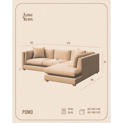 Ar labo stūri, ķieģeļu sarkans, četrvietīgs, platums 270 cm