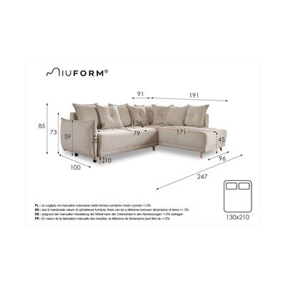 VelvetaSalokāms/ar uzglabāšanas vietuAr labo stūri/L veidaĶieģeļu sarkansČetrvietīgsPlatums 247 cmDziļums 191 cmSēdekļa dziļums 79 cm
