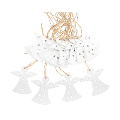 Burvīgie baltie koka eņģelīši ar džutas auklu lieliski iederas mūsu netradicionālajā Ziemassvētku eglītē. Tieši tas, ko meklēju.