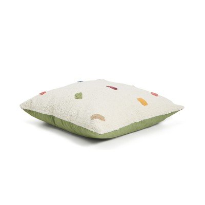 Tā ir izgatavota no 100% kokvilnas ar īsu plūksnu, kas nodrošina mīkstu un patīkamu sajūtu. Kokvilnas audums ir izturīgs un viegli kopjams. Neregulārās, krāsainās formas rotaļīgi izceļas uz krēmkrāsas fona, piešķirot pārklājumam dzīvespriecīgu izskatu. Pateicoties īsajai plūksnai, raksts vienmēr ir skaisti redzams un izteikts, turklāt to ir viegli tīrīt.