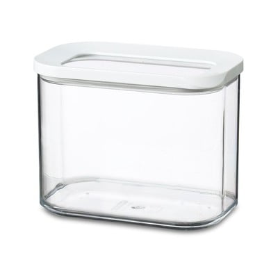 Praktisks plastmasas pārtikas trauks, ko var sakraut kaudzē.