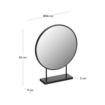Kave Home kosmētikas spogulis Libia ir praktisks un stilīgs papildinājums jebkuram interjeram. Pateicoties tā apaļajai formai un metāla konstrukcijai, tas lieliski iederas uz tualetes galdiņa, taču to var izmantot arī priekšnamā vai vannas istabā. Lai kur jūs to novietotu, tas vienmēr izskatīsies lieliski.