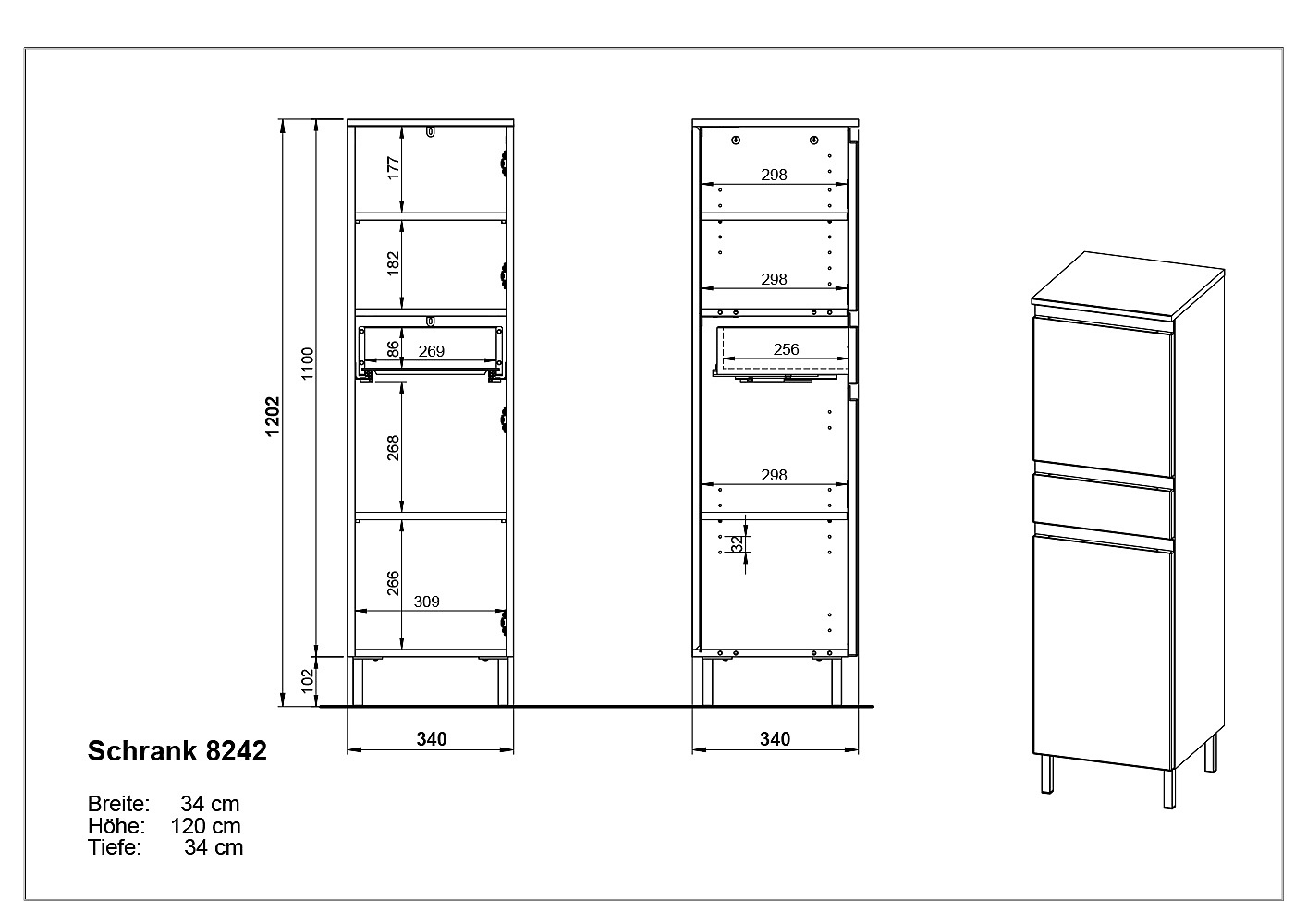 Augsts/šaursNo skaidu plāksnesVirsmas apdare: melamīnsAr matētu virsmuKrēmkrāsasPlatums 34 cmAugstums 120 cmDziļums 34 cm