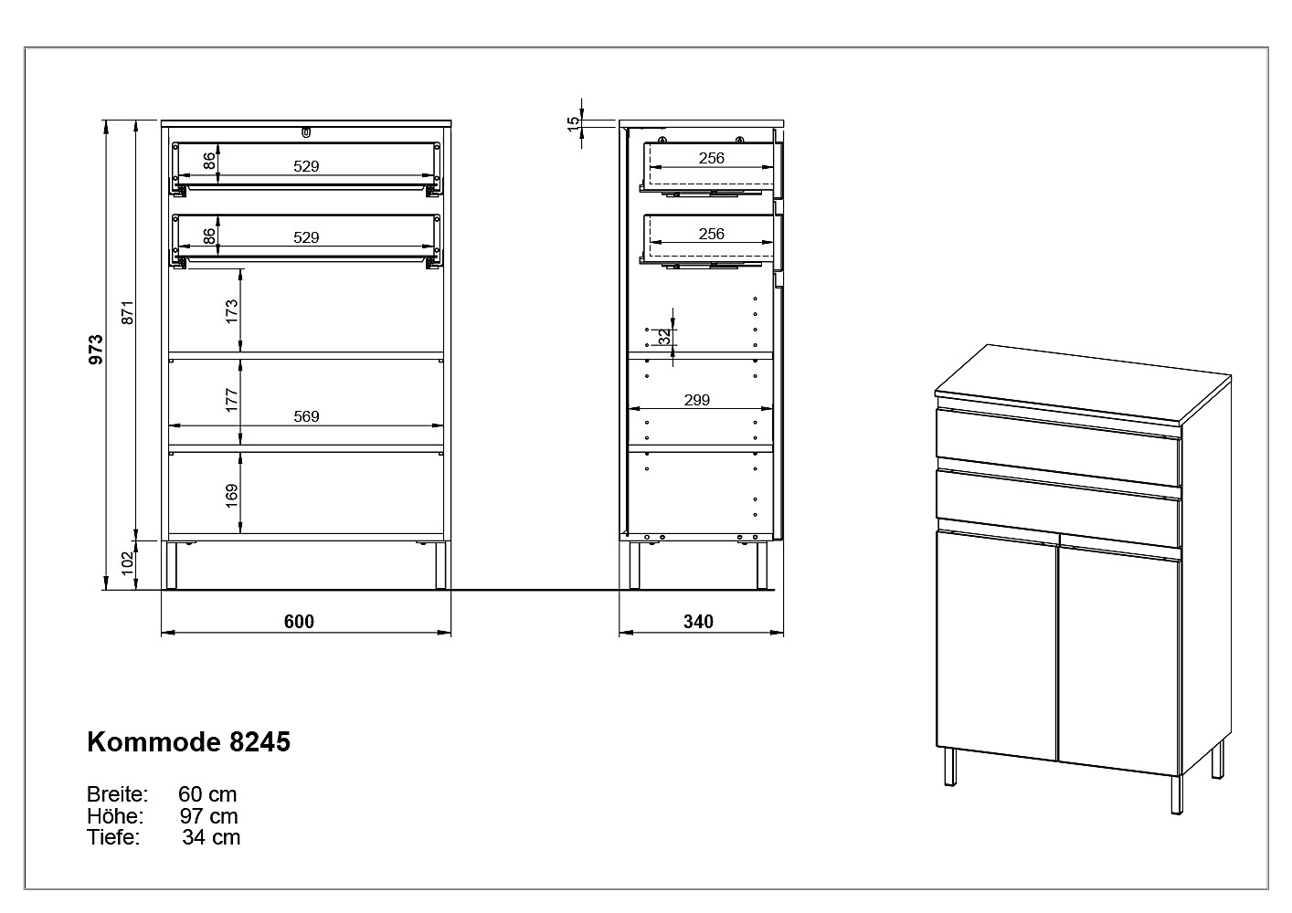 AugstsNo skaidu plāksnesVirsmas apdare: melamīnsAr matētu virsmuKrēmkrāsasPlatums 60 cmAugstums 97 cmDziļums 34 cm