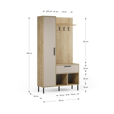 Ar ozolkoka imitācijuNo skaidu plāksnesVirsmas apdare: melamīnsKrēmkrāsas/dabīga toņaPlatums 108 cmAugstums 195 cmDziļums 35 cm