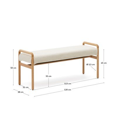 No šenila auduma, masīvkoka/polsterēts, krēmkrāsas/dabīga toņa, platums 120 cm, dziļums 38 cm, augstums 50 cm