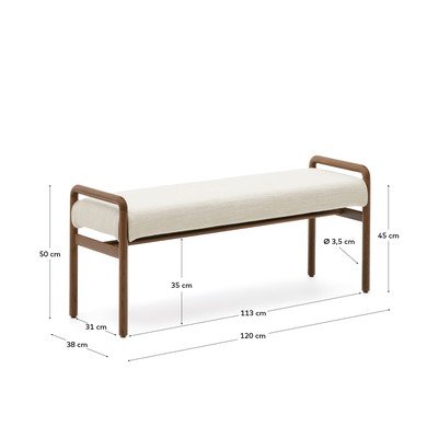 No šenila auduma, masīvkoka/polsterēts, krēmkrāsas/dabīga toņa, platums 120 cm, dziļums 38 cm, augstums 50 cm