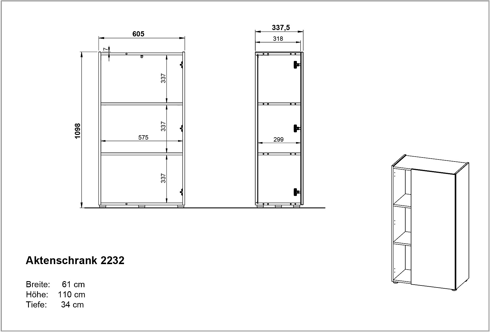Ar ozolkoka imitācijuNo skaidu plāksnesVirsmas apdare: melamīnsKrēmkrāsasPlatums 61 cmAugstums 110 cmDziļums 34 cm