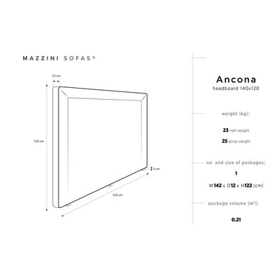 Gultas galvgalis AnconaPolsterēts, no šenila auduma, krēmkrāsas, 140x120 cm