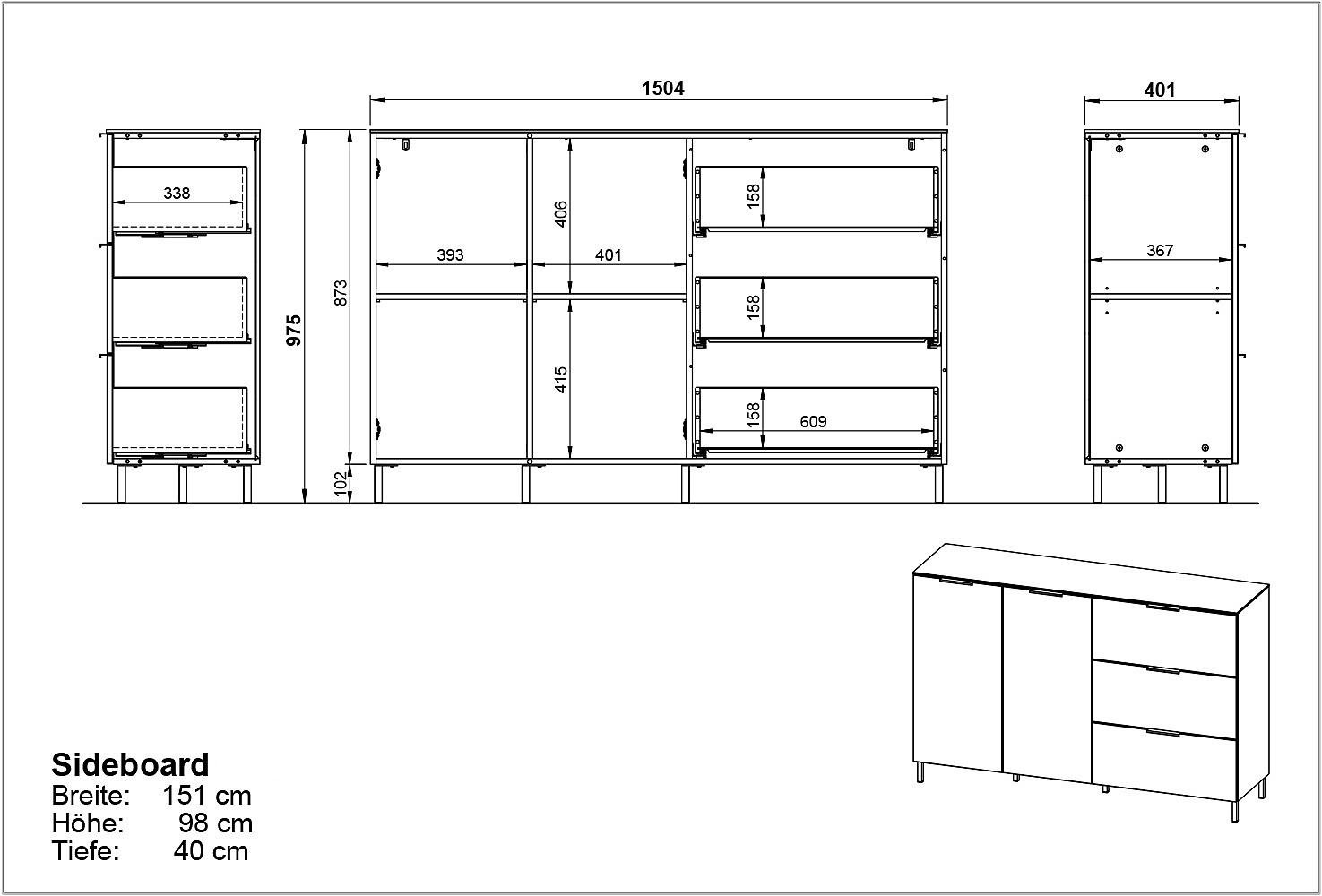 Matēta, no skaidu plāksnes, virsmas apdare: melamīns, ar matētu virsmu, krēmkrāsas, platums 151 cm, augstums 98 cm, dziļums 40 cm