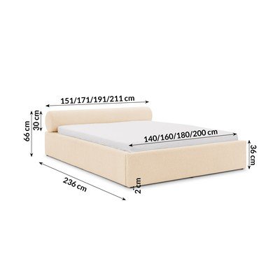 200x200 cm, ar veļas kasti, ar redelēm, polsterēta, no šenila auduma, krēmkrāsas