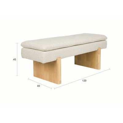 Polsterēts, krēmkrāsas, platums 120 cm, dziļums 40 cm, augstums 45 cm