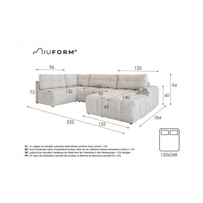 Salokāms/ar uzglabāšanas vietuAr kreiso stūriKrēmkrāsasVairākvietīgsPlatums 333 cmDziļums 187 cmSēdekļa dziļums 56 cm