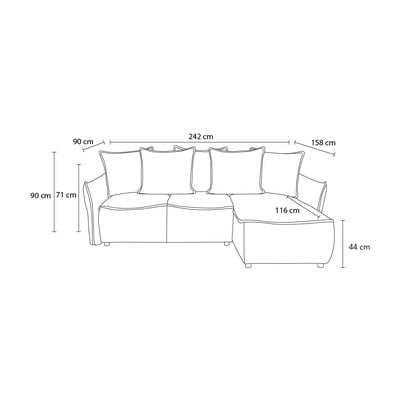 Salokāms/ar uzglabāšanas vietuAr labo stūri/ar zvilniKrēmkrāsasTrīsvietīgsPlatums 242 cm