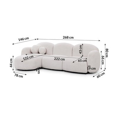 Krēmkrāsas stūra dīvāns no buklē auduma (ar kreiso stūri/ar zvilni) Orbit – Ropez