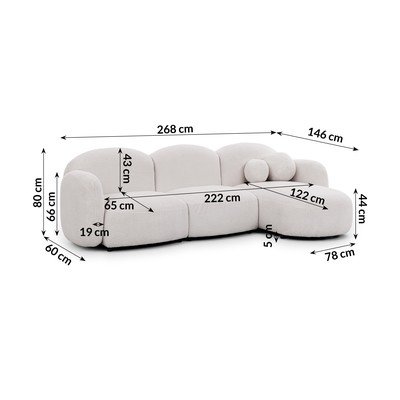 Krēmkrāsas stūra dīvāns no buklē auduma (ar labo stūri/ar zvilni) Orbit – Ropez