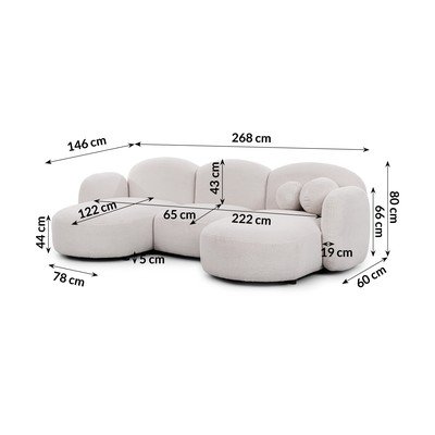 Krēmkrāsas stūra dīvāns no buklē auduma (ar labo stūri/ar zvilni) Orbit – Ropez