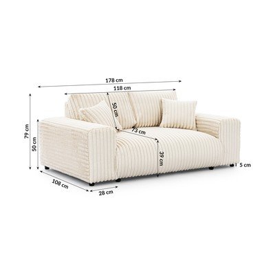 Velveta, krēmkrāsas, ūdensizturīgs/pret traipiem noturīgs, divvietīgs, platums 178 cm