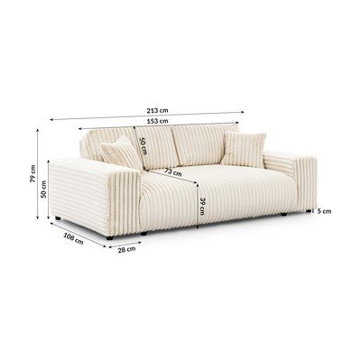 Velveta, krēmkrāsas, ūdensizturīgs/pret traipiem noturīgs, trīsvietīgs, platums 213 cm