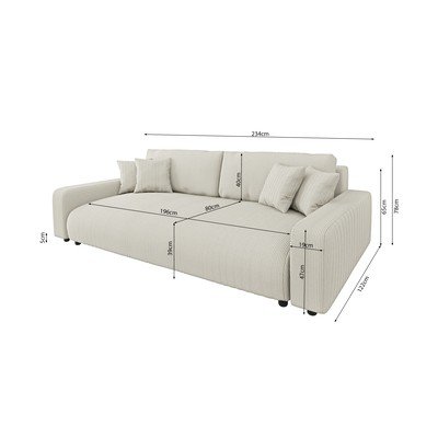 Velveta, salokāms/ar uzglabāšanas vietu, krēmkrāsas, trīsvietīgs, platums 234 cm