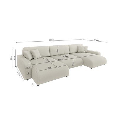 Velveta, salokāms/ar uzglabāšanas vietu, U veida, krēmkrāsas, vairākvietīgs, platums 332 cm