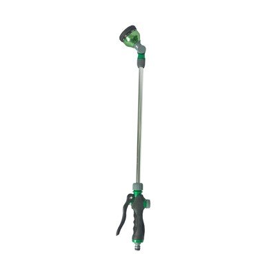 Šī laistīšanas pistole ar deviņiem dažādiem galvas iestatījumiem nodrošina ērtu ūdens plūsmas regulēšanu efektīvai zāliena apsmidzināšanai – no smalkas miglas līdz ļoti spēcīgai straumei. Tās ražošanā ir izmantota alumīnija un plastmasas materiāla kombinācija. Ērtai lietošanai tā ir aprīkota ar ergonomisku rokturi.