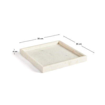 Kave Home dekoratīvā paplāte Serela pārsteidz ar savām taisnajām līnijām un tīrajiem stūriem, kas piešķir tam elegantu un vienlaikus atšķirīgu izskatu. Tā ir izgatavota no marmora, un katrs gabals ir oriģināls ar unikālu rakstu un dzīslojumu, kas atspoguļo akmens autentiskumu.