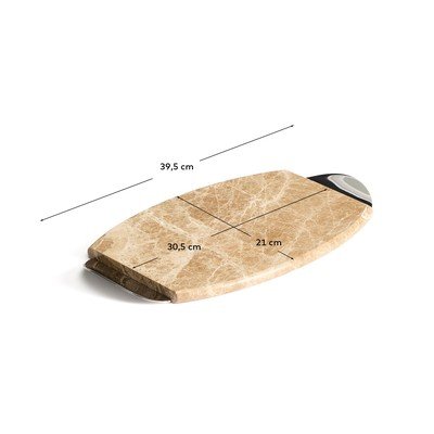 Marmora griešanas dēlis pasniegšanai Adoma no zīmola Kave Home izceļas ar izsmalcinātu un pārlaicīgu raksturu. Tas ir radīts, lai jūsu virtuvei piešķirtu gan funkcionalitāti, gan stilu. Šis dēlis ir izgatavots no marmora, materiāla, kas pazīstams ar savu izturību un eleganci. Tas ir lieliski apvienots ar metāla detaļām, kas piešķir tam mūsdienīgu pieskārienu. Tā kā tas ir veidots no marmora, katrs šāds dēlis ir unikāls un ekskluzīvs, ar saviem rakstiem un toņiem.