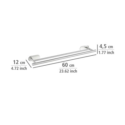 Ar uzstādīšanu bez urbšanasAr Turbo-Loc stiprinājumuNerūsējošā tēraudaMatētas sudraba krāsas60x12 cmAugstums 4,5 cm