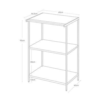 Trīs plaukti nodrošina pietiekami daudz vietas, piemēram, lielgabarīta virtuves ierīcēm, piemēram, mikroviļņu krāsnīm vai tosteriem. Komplektā ir arī 5 atsevišķi āķi papildu priekšmetu pakāršanai.