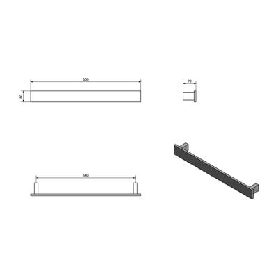 Sienas, matēti melns, 60x7 cm, augstums 6 cm