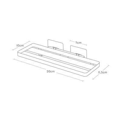 Plaukts ir viegli uzstādāms pie sienas, izmantojot komplektā iekļauto līmējošo āķi, tādējādi ietaupot vietu uz izlietnes.