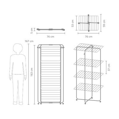 Matēti melns veļas žāvētājs 30 m HangOn Tower – Brabantia