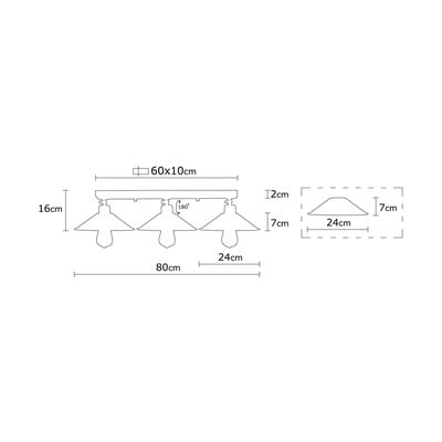 Ar saliekamu konstrukciju, ar metāla abažūru, metāla, melna, 24x80 cm, augstums 17 cm