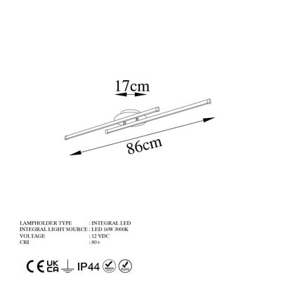 LED, metāla, melna, 10x86 cm, augstums 5 cm