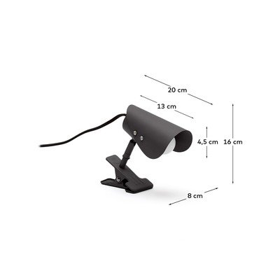 Lampu var orientēt horizontāli vai vertikāli, lai vienmēr panāktu perfektu leņķi. Tās dizains ietver organisku formu augšējo abažūru, kas piešķir tai izsmalcinātu un unikālu izskatu, pārvēršot to no tipiskas piestiprināmas lampas par dizaina priekšmetu. Pateicoties klipveida stiprinājumam, to ir viegli novietot uz dažādiem pamatiem, tāpēc tā ir ideāla izvēle lasīšanas stūrīšiem vai darba vietām, kur nepieciešama precīza un regulējama gaisma.