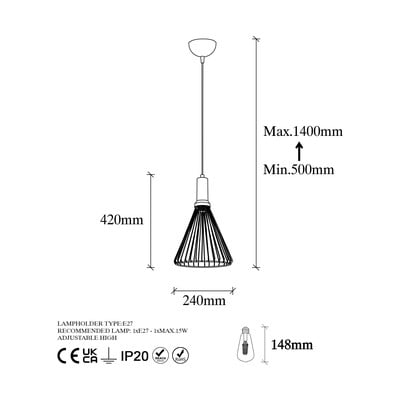 Ar metāla abažūru, metāla, melna, ø 24 cm, augstums 42 cm
