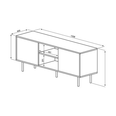Ar ozolkoka imitācijuNo skaidu plāksnesVirsmas apdare: melamīnsMelns/dabīga toņaPlatums 151 cmAugstums 40 cmDziļums 62 cm