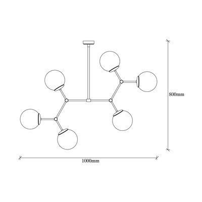 Damar piekaramā lampa no Opviq lights. Tās sazarotais dizains ar apaļiem piena stikla abažūriem rada modernu un atšķirīgu atmosfēru telpā.