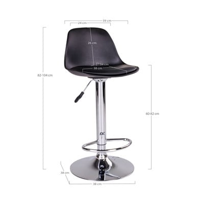 (2 gab.), ar regulējamu augstumu, polsterēti, no ādas imitācijas, melni, sēdekļa augstums 60 cm