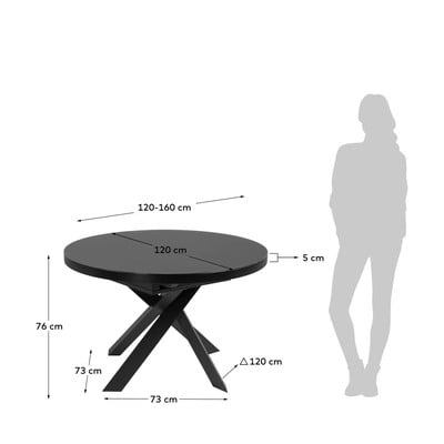 Izvelkams, ar papildu galda virsmu, ar stikla galda virsmu, ø 160 cm, izvērsts garums 160 cm