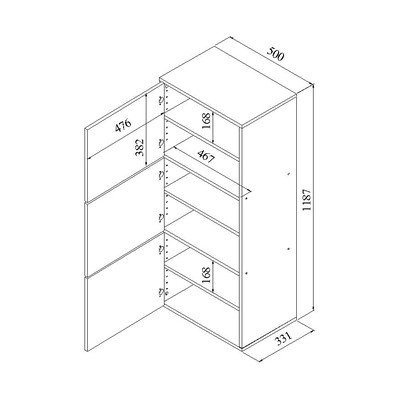 Apavu plaukts BambooAr ozolkoka imitāciju, no skaidu plāksnes, virsmas apdare: melamīns, melns/dabīga toņa, platums 50 cm, augstums 119 cm, dziļums 33 cm