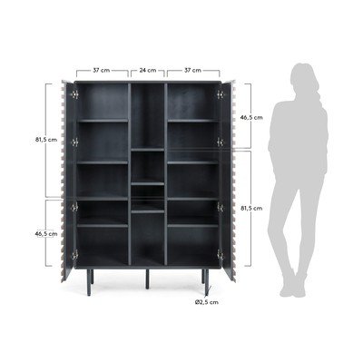 Ar riekstkoka imitācijuNo MDFVirsmas apdare: finieris/virsmas apdare: lakošanaAr matētu virsmuMelns/dabīga toņaPlatums 105 cmAugstums 155 cmDziļums 40 cm