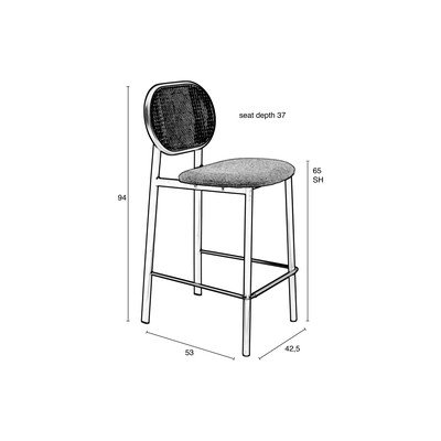 Polsterēts, melns/gaiši pelēks, sēdekļa augstums 65 cm
