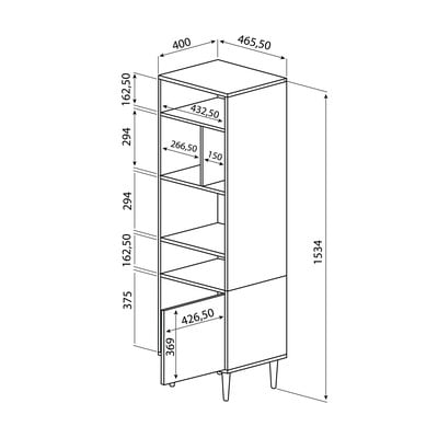 Ar ozolkoka imitācijuNo skaidu plāksnesVirsmas apdare: melamīnsMelns/dabīga toņaPlatums 47 cmAugstums 153 cmDziļums 40 cm