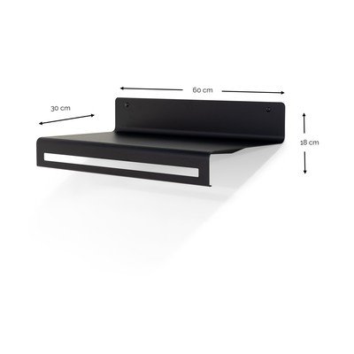 Ar plauktu, metāla, melns, platums 60 cm, augstums 18 cm, dziļums 30 cm